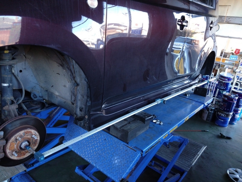 サイドスリップテスターで測定したところ、大きく基準値から外れていました。