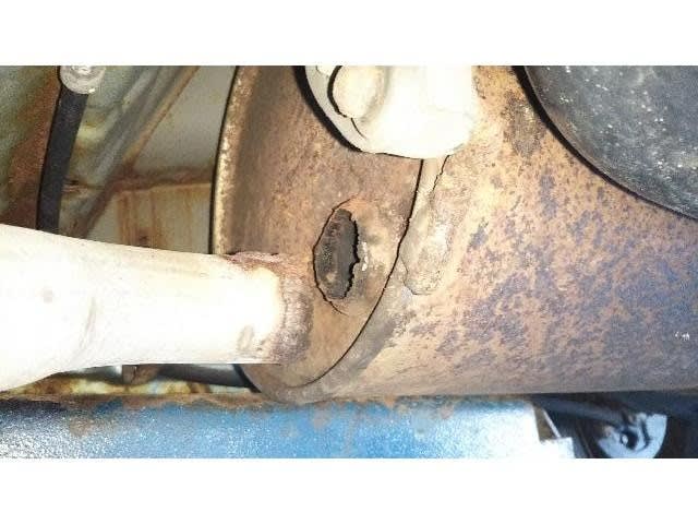 一番後ろのパイプの溶接部分が錆びて大きな穴が・・・<