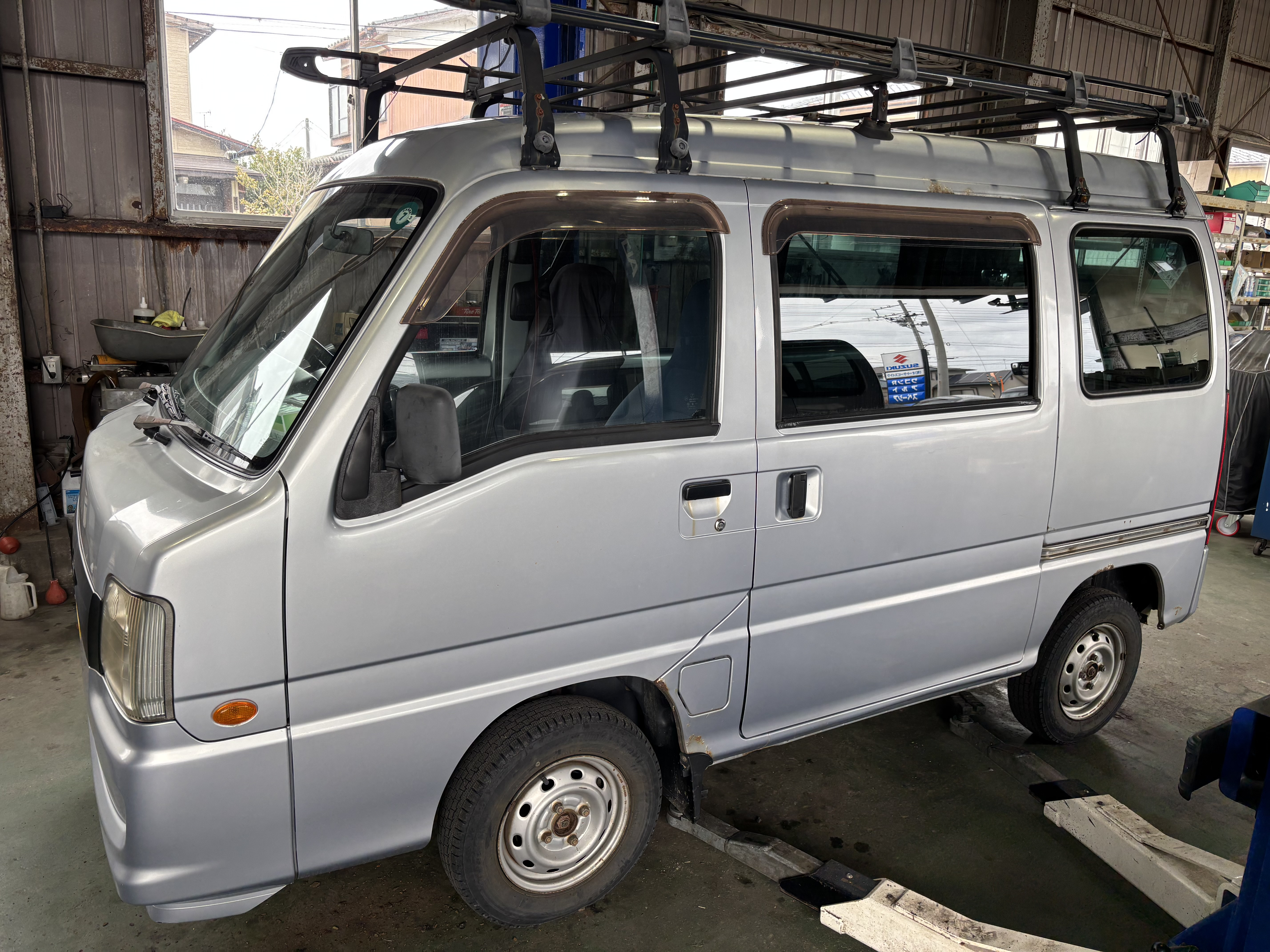 車検整備で入庫のサンバー。