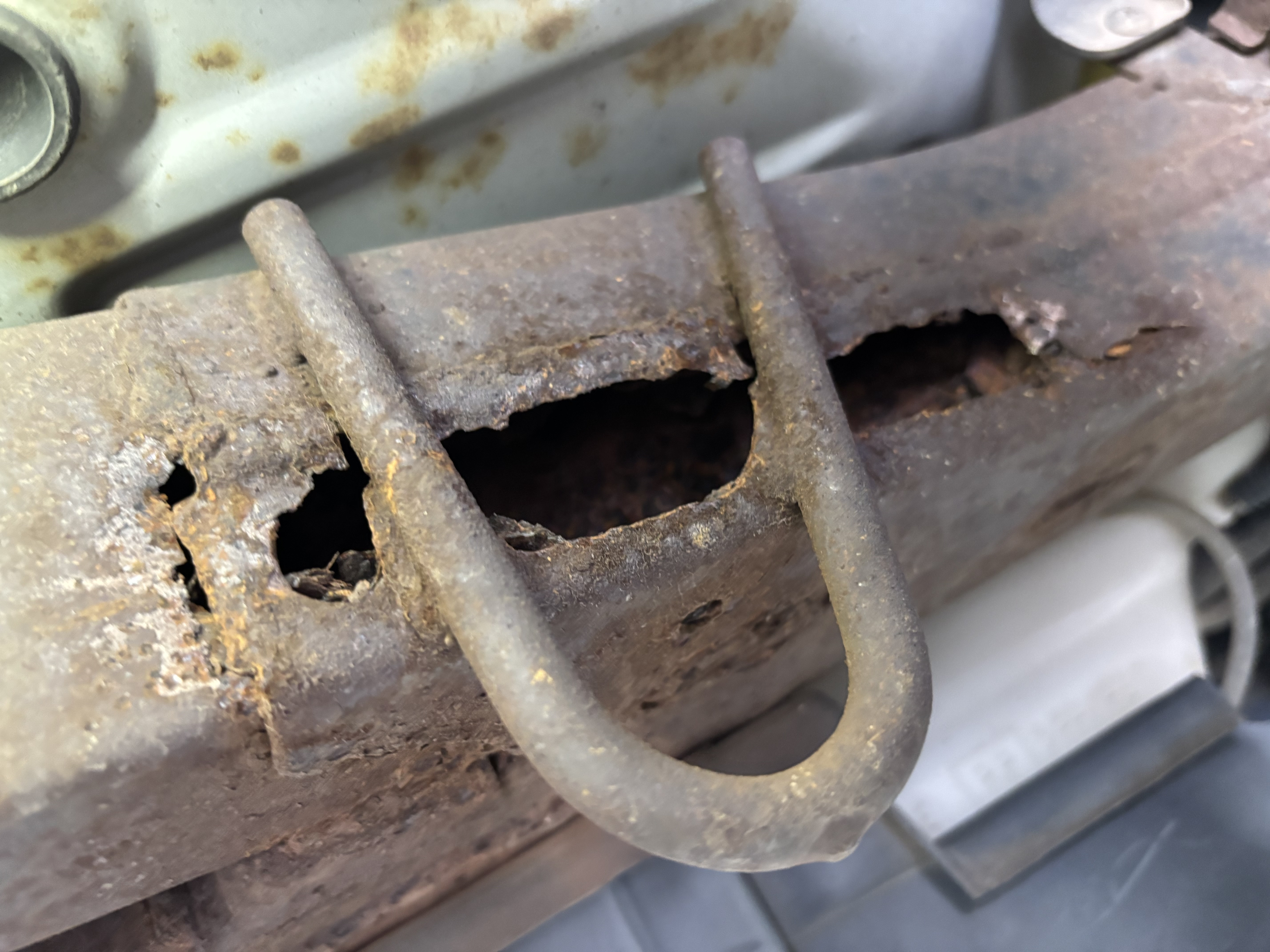 後サスペンションの取付部もサビで損傷。